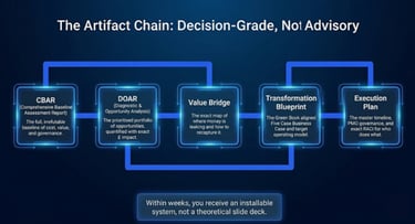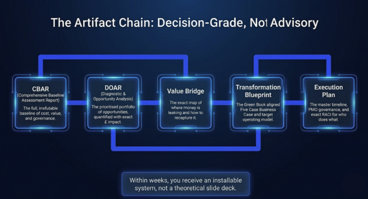 Most organisations struggle to turn strategic ambition into real results. Hidden inefficiencies drain budgets, fragmented change programmes miss targets, and traditional approaches fail to realise the full value of transformation.